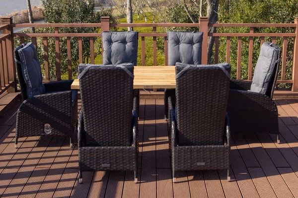 Machen Sie diese natürliche Esstischgruppe zum Mittelpunkt Ihrer Terrasse!