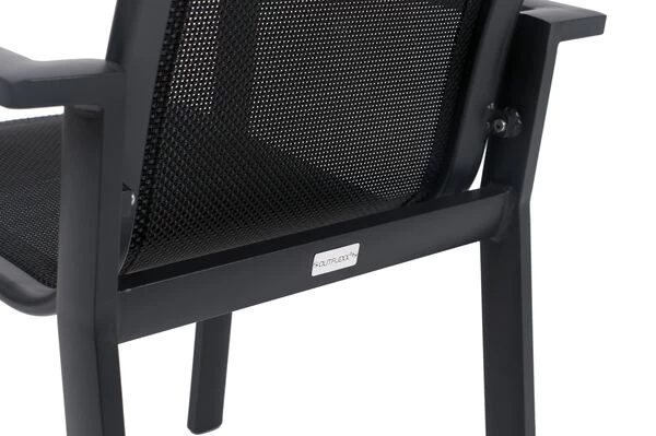 | Hoher Sitzkomfort Das für die Sitzfläche und Rückenlehne verwendete Textilenegewebe bietet neben einer sehr hohen Witterungsbeständigkeit auch luftdurchlässige Eigenschaften. Dadurch sitzt es sich ganz besonders komfortabel auf diesen Sesseln – auch ohne Polsterauflage. | |