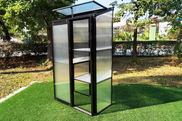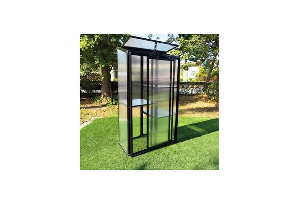 OUTFLEXX® Gewächshaus aus pulverbeschichtetem Aluminium und Polycarbonat, schwarz, ca. 91 x 51 x 168 cm