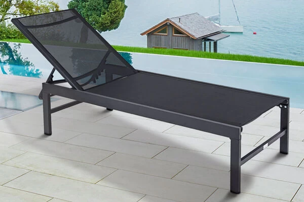 OUTFLEXX® Liege aus Alu/Textilene in OUTFLEXX® anthrazit matt/schwarz, ca. 190 x 62 x 34 cm