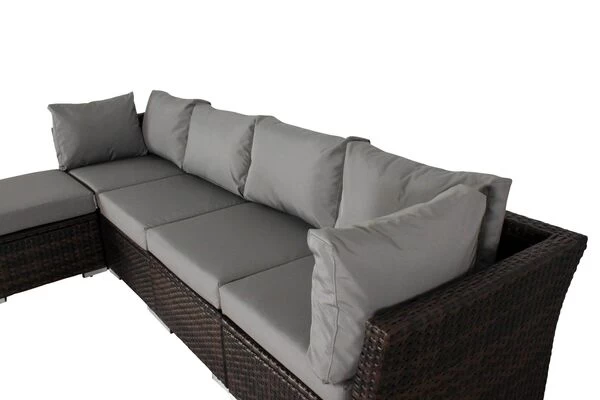 Mit ihrem klaren Design und den variablen Anordnungsmöglichkeiten wird diese Sitzgruppe das neue Highlight in Ihrem Garten. Das verwendete wetterfeste flache Geflecht aus strapazierfähigem Polyrattan ist besonders UV-beständig und trotzt auch extremen Temperaturen. Im Inneren befindet sich ein rostfreies Aluminiumgestell, welches für die nötige Stabilität sorgt und aufgrund des geringen Gewichts einen einfachen Platzwechsel ermöglicht.