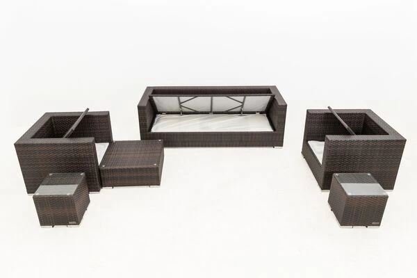 Loungemöbel-Set aus Polyrattan mit Kissenboxfunktion in braun-marmoriert für bis zu 6 Personen