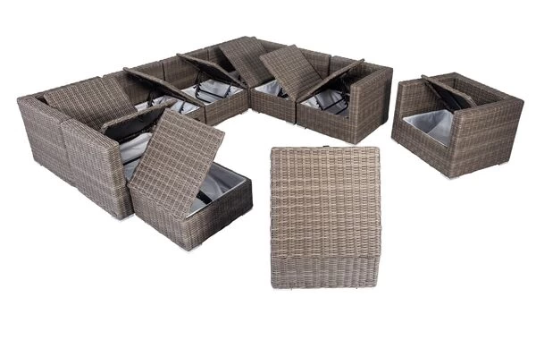 ModulelementeLine: Polyrattan Loungegarnitur mit Kissenboxfunktion in grau, für 10 Personen