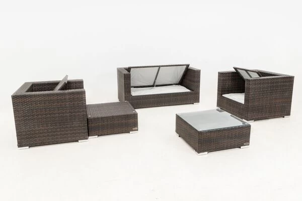 Loungemöbel-Set aus Polyrattan mit Kissenboxfunktion in braun-marmoriert für bis zu 5 Personen