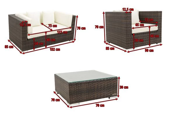 - Tiefe der Sitzflächen ohne Kissen: ca. 73 cm