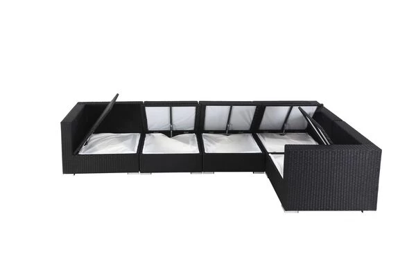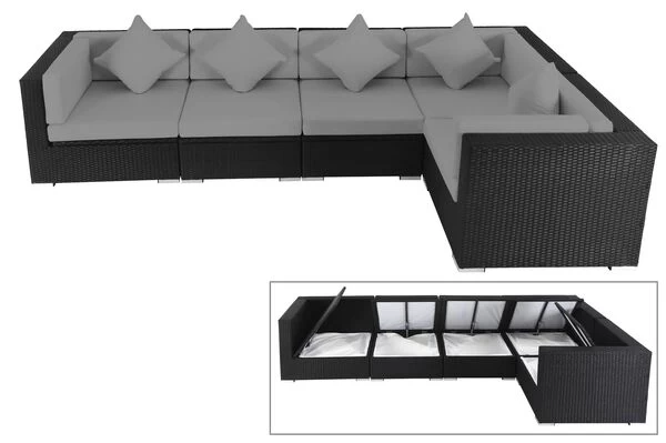 Polyrattan-Sitzgruppe mit Kissenboxfunktion in schwarz für 5 Personen
