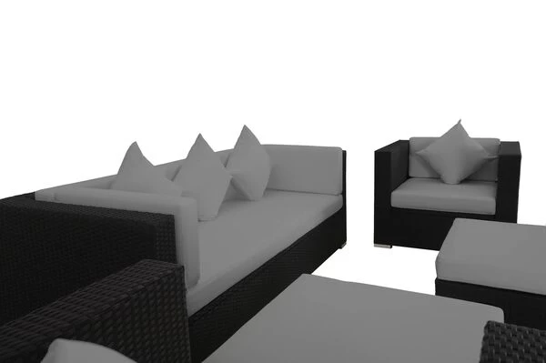Dieses OUTFLEXX® Loungemöbel-Set aus schwarzem, flachen Polyrattan mit Sitzplätzen für bis zu sechs Personen sieht nicht nur großartig aus, sondern bietet darüber hinaus verschiedene Anordnungsmöglichkeiten.