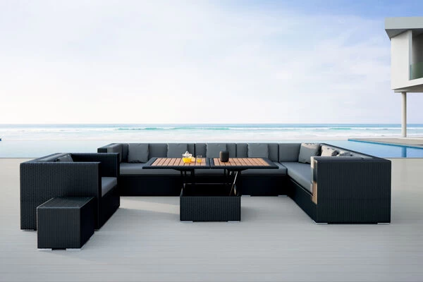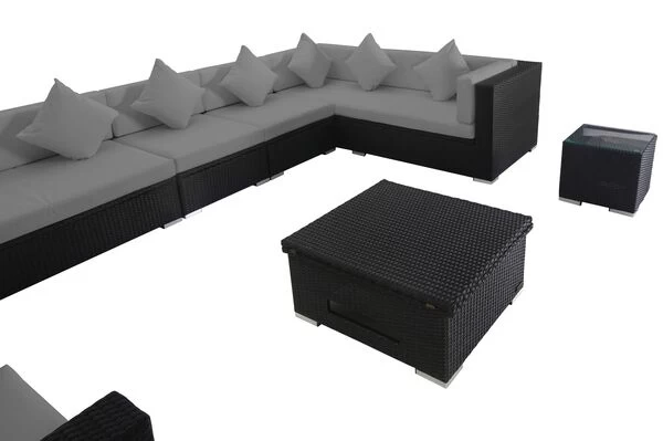 Für Ihr Outdoor Wohnzimmer: die OUTFLEXX® XXL Gartenlounge mit Kissenboxfunktion inkl. höhenverstellbaren Loungetisch in schwarz