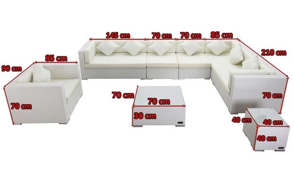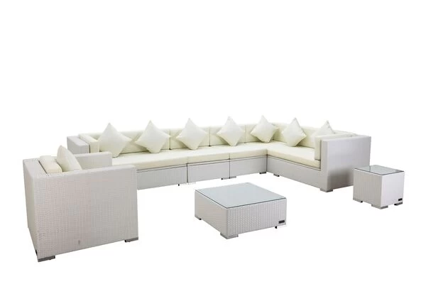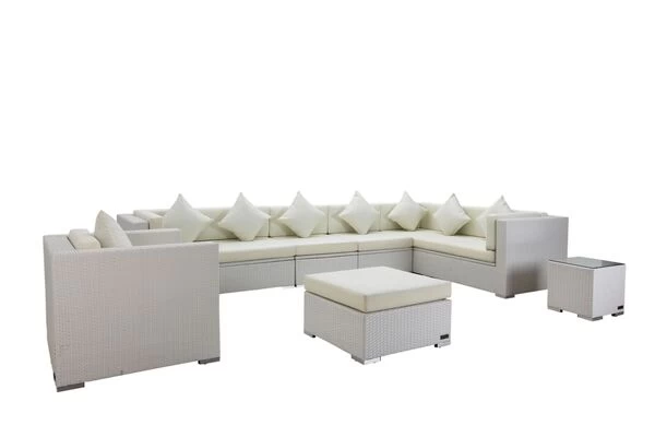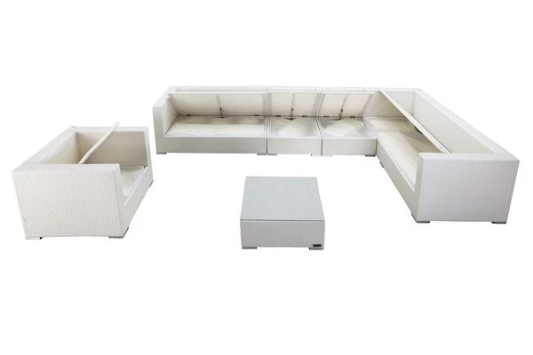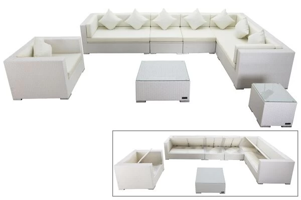 Mit dieser strahlend weißen Loungemöbel XXL Garnitur für 8 Personen werden Sie bei Ihren nächsten Gartenpartys keine Platzprobleme mehr haben.