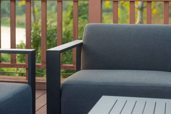 Da sich Wetterverhältnisse schnell ändern können, sorgt die Witterungsbeständigkeit und Pflegeleichtigkeit der hochwertigen Materialien für den nötigen Schutz. Die Gestelle aus Aluminium in anthrazit sind widerstandsfähig gegen jegliche Umwelteinflüsse. Ihre Pulverbeschichtung verbessert zusätzlich die Stoß-, Schlag- und Kratzfestigkeit des Materials und verleiht dem Aluminium einen dauerhaften Korrosionsschutz. Das verwendete Sunbrella Textilen (260g/m²) besteht aus 100 % Acryl, ist atmungsaktiv, schmutzabweisend und schimmelbeständig. Bei der Herstellung des hautsympathischen Materials werden die Farbpigmente bereits im Vorfeld in die Acrylfasern eingebettet, wodurch das Gewebe nicht nur besonders UV-beständig wird, sondern auch jeden Wind- und Wettereinflüssen trotzt. So sieht Sunbrellastoff selbst nach Jahren in Gebrauch noch aus wie neu. Auch verschüttete Getränke machen dem Material nichts aus. Das Innere des Polsters besteht aus besonderem Schaumstoff – dem „Quick Dry Foam“. Eingedrungenes Wasser kann ungehindert austreten und unangenehme Gerüche sowie Schimmelbildung werden vermieden. Erfreuen Sie sich das ganze Jahr über an diesem Set – die hohe Qualität der Materialien macht es möglich.