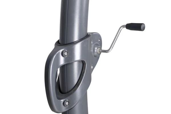 | Kurbelsystem Mit der im Griffteil eingearbeiteten Kurbelmechanik können Sie den Schirm ganz einfach öffnen und schließen. Des Weiteren können Sie hiermit die Dachneigung komfortabel einstellen. | |