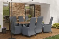 Sie verbringen gerne gemütliche Grillabende mit Ihren Liebsten und sind auf der Suche nach einer bequemen und zugleich pflegeleichten Esstischgarnitur? Dann sollten Sie sich diese Esstischgruppe bestehend aus einem praktischen Ausziehtisch und 8 extravaganten Sunbrella Sesseln von OUTFLEXX® genauer ansehen.