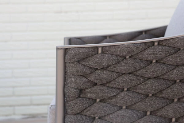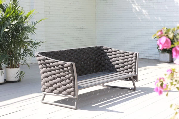 | Neuartiges Gewebe XL Rope Das hier verwendete Material Rope ist ein modernes Geflecht mit Kordeloptik. Schlicht und auffallend zugleich. Sie dachten, das ginge nicht? Diese Sitzecke beweist das Gegenteil. Strapazierfähig und pflegeleicht ist Rope ebenfalls, so dass Sie keine große Arbeit in diese Sitzgruppe investieren müssen. | |