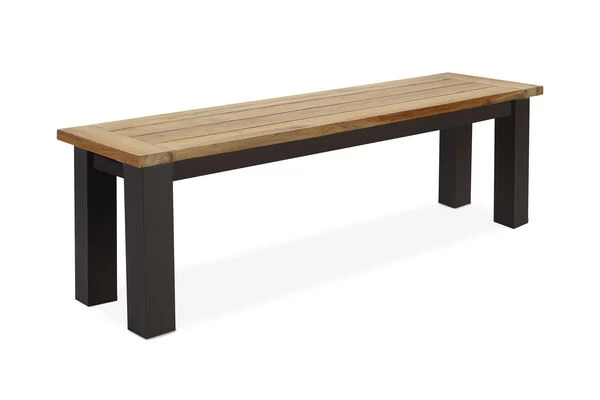 OUTFLEXX® Gartenbank „Oxford“ aus recyceltem FSC®-Teakholz und Aluminium, ca. 150 x 40 x 46 cm