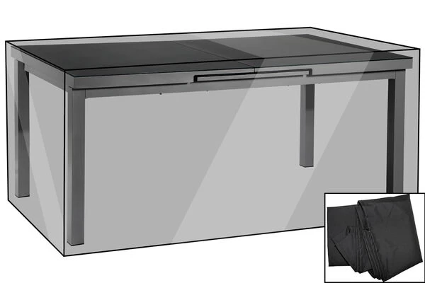 Die rechteckige Haube passt mit den Maßen von ca. 222 x 122 cm und einer Höhe von ca. 74 cm zu diversen Esstischen mit einer Länge von ca. 180 / 200 cm, z.B. zu folgenden Artikeln: