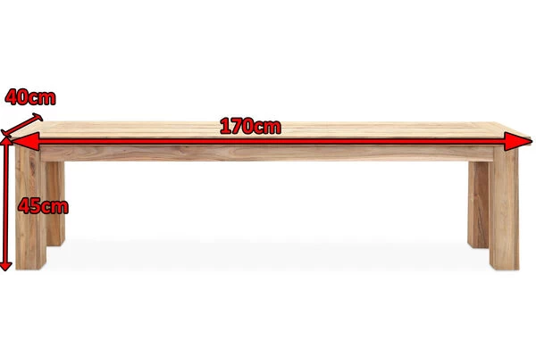 Die stabile Bank sorgt für eine außergewöhnliche Optik, die Maße betragen ca. 170x40x45 cm, das Artikelnettogewicht beträgt ca. 22 kg, die Maße der Banfüße ca. 8x8cm. Tolle Abende und Grillfeste warten auf Sie! Entspannung und Erholung sind hier vorprogrammiert! Wir setzen ganz klar auf Langlebigkeit, dass massive Teakholz ist sehr robust und beschert Ihnen lange eine Freude.