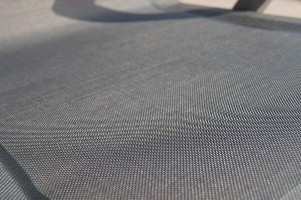 Dieses Kunststoffgewebe aus Polyester und Vinyl zeichnet sich durch eine besonders hohe Belastbarkeit aus, wobei es dennoch sehr leicht ist. Neben Frost- und Hitzebeständigkeit überzeugt es durch eine hohe Lichtbeständigkeit. Das Material bietet neben einem hohen Komfort ein luftiges, kühles Sitz- und Liegegefühl. Es ist zudem sehr pflegeleicht: klares Wasser oder eine milde Seifenlauge sind ausreichend. Da das Material kaum Feuchtigkeit aufsaugt, trocknet es sehr schnell.