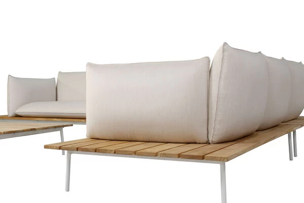 OUTFLEXX® Vail Loungemöbel, weiß/natur/actionlinen 44285-0000, Alu/FSC-Teakholz/Sunbrella, für bis zu 7 Personen