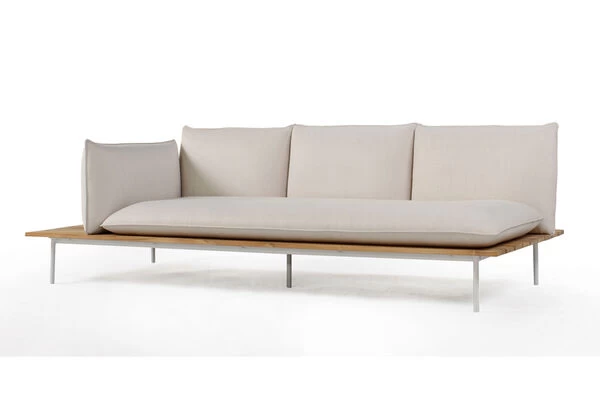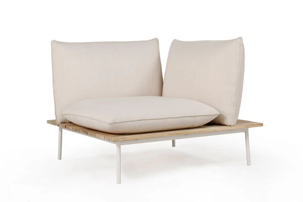 Das Obermaterial dieser Lounge besteht aus hochwertigem Sunbrella Textilen (260g/m²). Das Basismaterial von Sunbrella ist spinndüsengefärbtes Acryl, bei dem bereits bei der Herstellung Farbpigmente in die Faser eingebettet werden. Dadurch ist das Gewebe UV-beständig und trotzt Wind- und Wettereinflüssen. Durch ihre absolute Wetterfestigkeit können Sie die Loungemöbel ganzjährig ohne Schutz auf Ihrer Terrasse stehen lassen – und auch verschüttete Getränke oder dreckige Schuhe machen dem Stoff nichts aus. Auch in puncto Farbechtheit unterscheidet sich Sunbrella vom klassischen Textilgewebe, die Farbe sieht auch nach Jahren in Gebrauch noch aus wie neu. Außerdem weist der Stoff atmungsaktive, schmutzabweisende und schimmelbeständige Eigenschaften auf, weshalb er sich hervorragend für den Innen- und Außenbereich eignet. Das Innere des Polsters besteht aus besonderem Schaumstoff – dem „Quick Dry Foam“. Dieses Material verfügt über eine offenporige Zellstruktur, welche mit der Funktion einer Drainage vergleichbar ist. Eingedrungenes Wasser kann ungehindert austreten und unangenehme Gerüche sowie Schimmelbildung werden vermieden. Je nach Beanspruchung und Umwelteinflüssen empfehlen wir, die Sunbrella Möbel einmal im Monat mit einem Wasserschlauch oder einer sanften Bürste von oberflächlichen Verschmutzungen zu befreien. Pflege- und Reinigungsmittel mit denen Sie Ihre kostbaren Möbel vor Dreck schützen können finden Sie im Zubehör. Der Loungetisch ist aus pulverbeschichtetem Aluminium in Kombination mit schönem Teakholz gefertigt. Dadurch ist der Tisch auch für den Einsatz draußen das ganze Jahr über geeignet. Die Teakablagen links und rechts sorgen für zusätzliche Ablageflächen um zum Beispiel ein kühles Getränk oder Zeitschriften problemlos abzustellen.