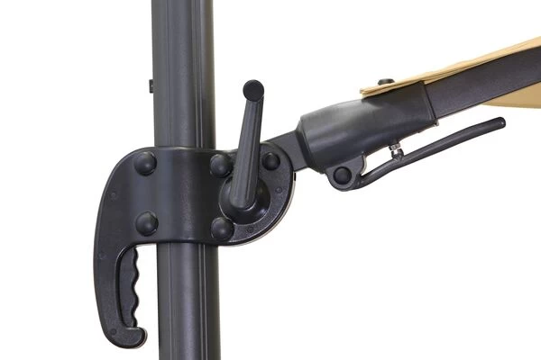 | Kurbelsystem Mit der im Griffteil eingearbeiteten Kurbelmechanik können Sie den Schirm ganz einfach öffnen und schließen. Des Weiteren können Sie hiermit die Dachneigung komfortabel einstellen. |