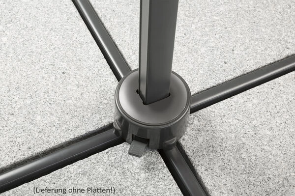 - Kombination mit OUTFLEXX Schirmständern oder OUTFLEXX Bodenanker ohne Adapterplatte 18885 möglich