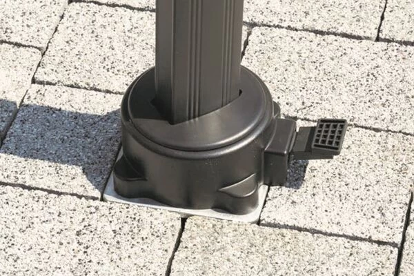Sorgen Sie für Standfestigkeit und fixieren Sie Ihren Rhodos Eco Sonnenschirm mit der Universal-Bodenplatte von Schneider.