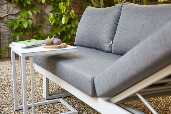 SIENA GARDEN Avenia Dining-Bank/Liege, matt weiß-grau/stone grey, Aluminium, 73x195x70 cm, inkl. Sitz-und Rückenkissen