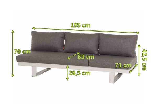 Lassen Sie den Alltag hinter sich: Mit Maßen von ca. 73 x 195 x 70 cm bietet die Bank eine Sitzbreite von ca. 194,7 cm. Bis zu 3 Personen finden bequem auf ihr Platz. Mit einer Sitzhöhe von ca. 28,5 cm lässt es sich gemütlich entspannen. Ein herrlicher Rückzugsort, um den Tag gemeinsam ausklingen zu lassen! Die hochwertige Verarbeitung macht die Bank strapazierfähig und robust, mit einem Gewicht von ca. 28,5 kg ist sie auch sehr stabil und wertig. Die mitgelieferten Sitz- und Rückenkissen in der Farbe matt weiß-grau bestehen zu 100% aus Polypropylen, dieses Material ist sehr wetterfest. Die Rückenlehne ist umklappbar, somit können Sie Die Bank auch als Liege verwenden. Die Produkte der Marke bestechen vor allem durch ansprechendes Design, Robustheit der Materialien und Pflegeleichtigkeit – sie sorgen für ein absolutes Wohlfühlambiente in Ihrem Garten. Die Qualität wird Sie begeistern und Sie werden sich viele Jahre daran erfreuen.