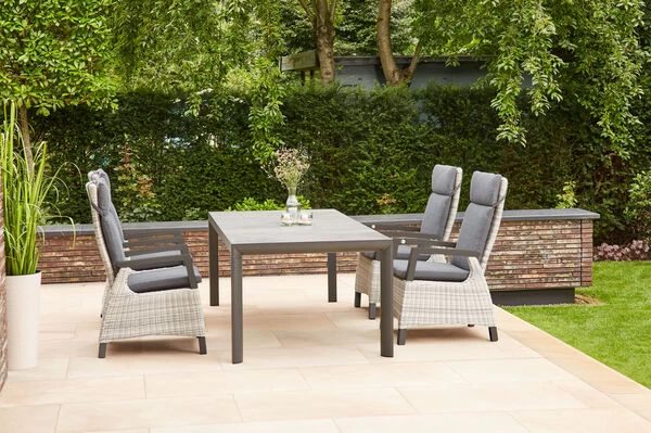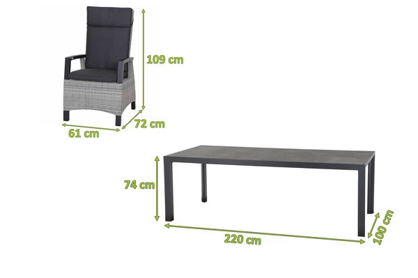 Holen Sie sich eine Extraportion Komfort in Ihren Garten. Die moderne Serie Carlos/Corido besticht durch höchsten Sitzgenuss. Die einzigartigen Wellness-Möbel vereinen gekonnt Qualität mit trendigem funktionalen Design. Die Rückenlehne des bequemen Sessels lässt sich mehrfach verstellen, somit wird jedes Essen zu einem gemütlichen Miteinander.