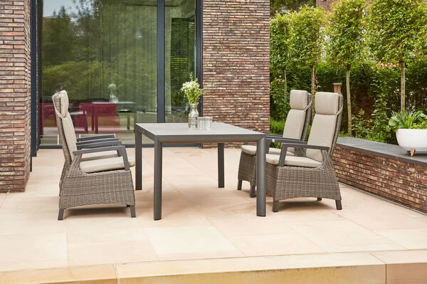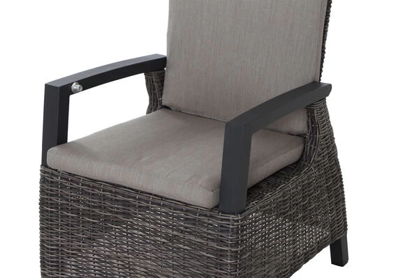Holen Sie sich eine Extraportion Komfort in Ihren Garten. Die moderne Serie Carlos/Corido besticht durch höchsten Sitzgenuss. Die einzigartigen Wellness-Möbel vereinen gekonnt Qualität mit trendigem funktionalen Design. Die Rückenlehne des bequemen Dining Sessels lässt sich stufenlos verstellen, somit wird jedes Essen zu einem gemütlichen Miteinander.