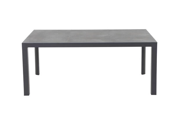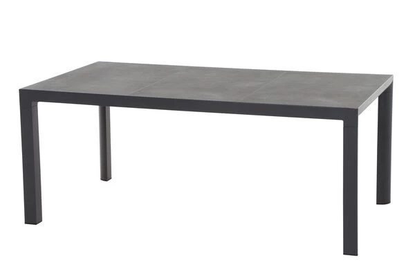 Wer das Besondere liebt ist mit diesem Esstisch bestens bedient. Der Tisch bietet mit seinen Maßen von ca. 180 x 100 x 74 cm Platz für ca. 6 Personen – so steht dem gemütlichen Mittagessen mit der Familie nichts mehr im Wege. Das Gestell wurde aus pulverbeschichtetem Aluminium in matt anthrazit hergestellt, was den Tisch besonders haltbar macht. Die Tischplatte besteht aus hochwertigem Keramik, während die Tischbeine für ein weiteres optisches Highlight sorgen. Durch die großzügige Unterschubhöhe kann man gemütlich mit vielen Arten von Sesseln an diesem Tisch Platz nehmen. Der Tisch hat ein Gewicht von ca. 59 kg, und ist somit perfekt gegen Windstöße geschützt. Die Fußkappen bestehen aus schwarzem Kunststoff und schützen den Boden vor unschönen Kratzern beim Verrücken des Möbelstücks.