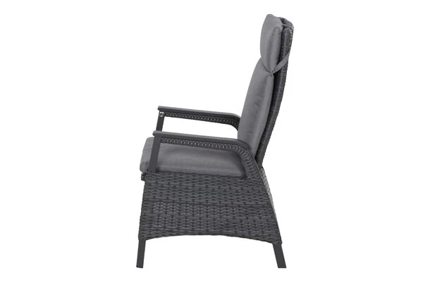 Bei Wind und Wetter sorgt die Witterungsbeständigkeit und Pflegeleichtigkeit der verwendeten Materialien für den nötigen Schutz. Das Untergestell des Sessels besteht aus pulverbeschichtetem Aluminium, und ist stabil sowie widerstandsfähig. Aufgrund seines geringen Gewichts (ca. 11,5 kg) lässt er sich auch schnell an Ihren Lieblingsplätzen im Garten, auf der Terrasse oder auf dem Balkon platzieren. Das Aluminiumgestell wird mit halbrundem GARDINO®-Geflecht aus Polyethylen bespannt. Diese Faser trocknet besonders schnell, ist schmutzunempfindlich und erzeugt mit ihrer natürlichen Optik einen edlen und modernen Look, der jeder Gartengestaltung ein besonderes Flair verleiht. Die gemütlichen und pflegeleichten Sitzpolster aus 100 % Polypropylen (280 g/m²) sind farblich passend auf das Geflecht abgestimmt. Bei Verschmutzung sind die Bezüge leicht zu reinigen – bitte beachten Sie, dass das Kopfteil nicht abnehmbar ist. Wir empfehlen dieses vorsichtig per Hand zu waschen. Ergänzen Sie den tollen Loungesessel mit weiteren Möbeln von SIENA GARDEN. Die große Auswahl macht es Ihnen leicht sich Ihren persönlichen Ruhepol zusammenzustellen.