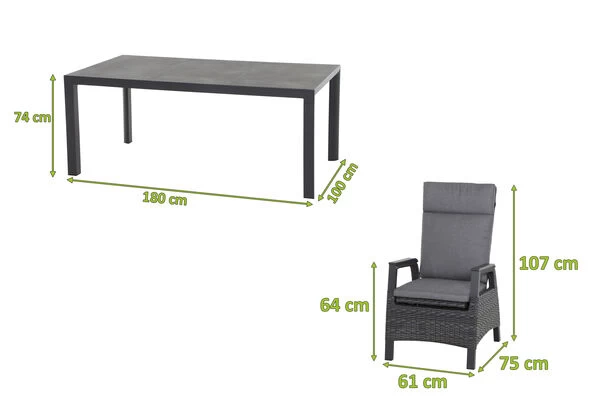 SIENA GARDEN Carlos/Solea Dining Set, anthrazit/grau/blau, Alu/Gardino®-Geflecht/Keramik, ca. 180 x 100 cm, inkl. 4 Diningsessel, stufenlos verstellbar