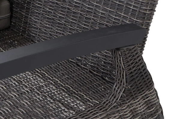 | Stabiles Polyrattan-Geflecht Das halbrunde Polyrattan-Geflecht GARDINO® in der Farbe charcoal grey zeichnet sich besonders durch seine Lichtechtheit und Stabilität aus. Es ist zudem besonders wasserabweisend und wetterfest. Das robuste Material schützt das Möbelstück somit bestens vor Witterungseinflüssen. |