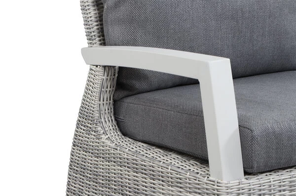 Die verwendeten Materialien sorgen bei Wind und Wetter für den nötigen Schutz. Das Untergestell des 2-Sitzers besteht aus pulverbeschichtetem Aluminium in matt-weiß-grau und macht das Loungesofa nicht nur stabil, sondern sorgt auch dafür, dass es sich aufgrund des relativ geringen Gewichts (ca. 18,4 kg) ganz leicht hin und her stellen lässt. Das Aluminiumgestell wird mit halbrundem GARDINO®-Geflecht aus Polyethylen bespannt. Diese Faser trocknet besonders schnell, ist schmutzunempfindlich und erzeugt mit ihrer natürlichen Optik in „ice grey“ einen edlen und modernen Look, der jeder Gartengestaltung ein besonderes Flair verleiht. Die gemütlichen und pflegeleichten Sitzpolster aus 100 % Polypropylen (280 g/m²), sind farblich passend auf das Geflecht abgestimmt. Bei Verschmutzung können Sie die Bezüge abnehmen und von Hand waschen. Ergänzen Sie das tolle Loungesofa mit den weiteren Möbeln der Serie Corido von SIENA GARDEN. Die große Auswahl macht es Ihnen leicht sich Ihren persönlichen Ruhepol zusammenzustellen. Sie werden sehen, Ihre Wellnessoase zum Durchatmen und Entspannen wird auch die Augen Ihrer Lieben zum Strahlen bringen.