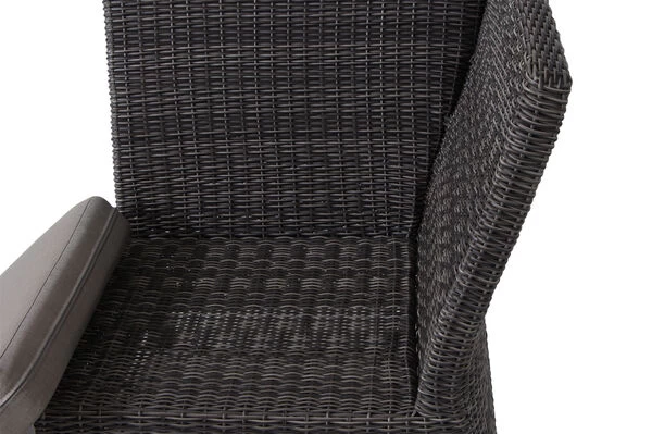 | Stabiles Polyrattan-Geflecht Das halbrunde Polyrattan-Geflecht GARDINO® in der Farbe charcoal grey zeichnet sich besonders durch seine Lichtechtheit und Stabilität aus. Es ist zudem besonders wasserabweisend und wetterfest. Das robuste Material schützt das Möbelstück somit bestens vor Witterungseinflüssen. |