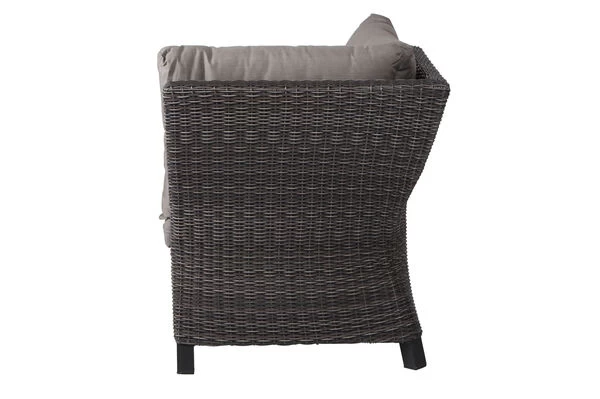Gönnen Sie sich eine Auszeit. Egal ob Sie die Beine hochlegen und ein gutes Buch in der Sonne lesen, gemütlich zusammen mit Freunden ein Kaffeekränzchen halten oder in gepflegter Atmosphäre einen Brunch oder ein Abendessen genießen möchten. Dieser bequeme Sessel mit einem Gesamtmaß von ca. 83 x 83 x 88 cm ist der ideale Begleiter und lädt Sie jederzeit zum Verweilen ein. Die ca. 60 cm breite Sitzfläche bietet Ihnen genügend Platz. Mit einer großzügigen Sitztiefe von ca. 60 cm und bei einer Sitzhöhe von ca. 36 cm ohne Kissen lässt es sich herrlich entspannen. Ergänzen Sie das Modul mit weiteren Elementen der Corido-Serie und stellen Sie sich Ihre individuelle Lounge zusammen. Die große Auswahl macht es Ihnen leicht sich Ihren persönlichen Ruhepol zusammenzustellen. Passende, extra starke Kissen in der Trendfarbe „taupe meliert“ sind bereits inklusive und verleihen dem Sitzmöbel ein unvergleichliches Sitzerlebnis.