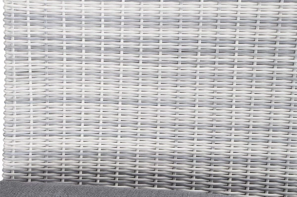 | Stabiles Polyrattan-Geflecht Das halbrunde Polyrattan-Geflecht GARDINO® in der Farbe ice grey zeichnet sich besonders durch seine Lichtechtheit und Stabilität aus. Es ist zudem besonders wasserabweisend und wetterfest. Das robuste Material schützt die Möbel somit bestens vor Witterungseinflüssen. |
