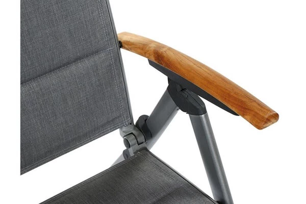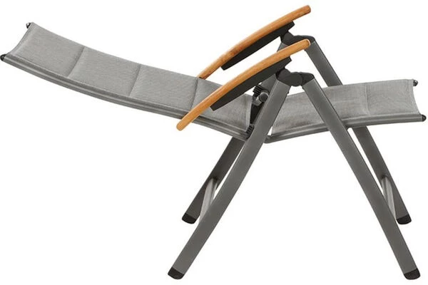 Dieser Klappsessel ist nicht nur ein Highlight in Sachen Optik, sondern weiß auch durch seinen Komfort und durch seine qualitative Verarbeitung zu überzeugen. Für ein komfortables Sitzen sorgt die hochwertige Texfabric Bespannung, die den Klappsessel auch ohne Auflagen äußerst bequem macht. Außerdem ist die Rückenlehne 10-fach verstellbar, sodass der Sessel je nach Bedarf in eine Sitz- oder Liegeposition gebracht werden kann. Das zeitlose Design aus einem Aluminiumgestell mit einer Textilenbespannung in der Farbe grau, macht den Sessel zu einem optischen Highlight für jede Terrasse. Armlehnen aus Teakholz ergänzen das edle Design. Dank der verwendeten Materialien hat dieser Multipositionssessel das sehr geringe Eigengewicht von ca. 5,9 kg, wodurch er leicht zu handhaben ist und bei Bedarf schnell und einfach zusammengeklappt und platzsparend verstaut werden kann.