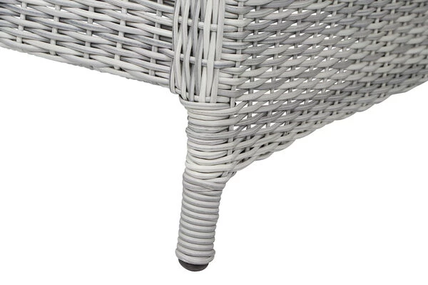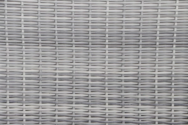 | Stabiles Polyrattan-Geflecht Das halbrunde Polyrattan-Geflecht GARDINO® in der Farbe ice grey zeichnet sich besonders durch seine Lichtechtheit und Stabilität aus. Es ist zudem besonders wasserabweisend und wetterfest. Das robuste Material schützt das Möbelstück somit bestens vor Witterungseinflüssen. |