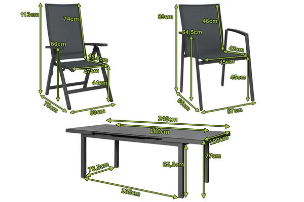 STERN New Top Esstischgarnitur aus Aluminium/Textilene, Anthrazit, Premium Ausziehtisch 180/240x100x77cm und 6 Stapel-/Klappsessel