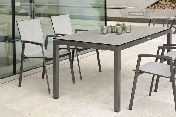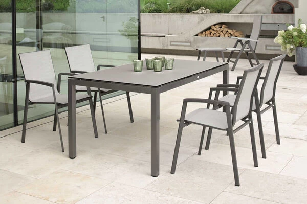 Stapelsessel New Top mit Aluminiumgestell in anthrazit und Sitzfläche aus Textilene in silber von Stern