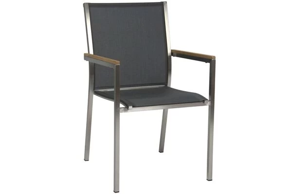 6x Stern Stapelsessel „Polaris“ in silber/silbergrau, Armlehnen aus FSC®-Teakholz