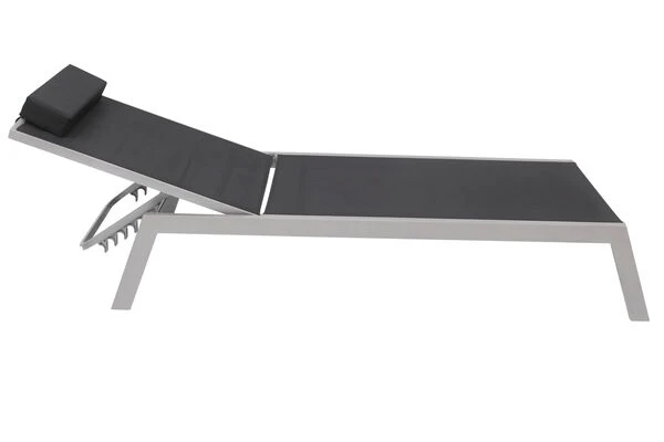 Exklusives Gartenliegenset von Villana in Silber / Schwarz mit praktischem Beistelltisch