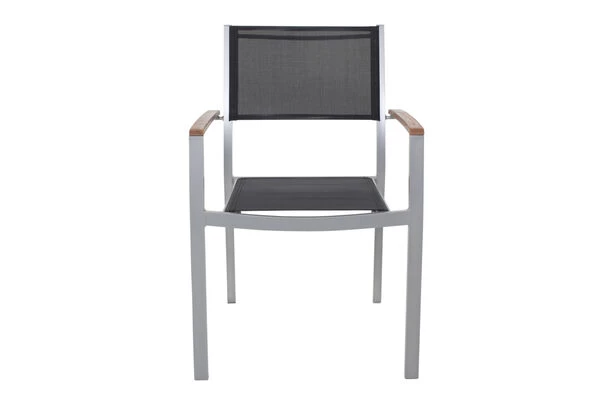Die bequemen Stapelsessel wurden mit formstabilen Textilene-Gewebe aus 70% Polyvinylchlorid (PVC) und 30% Polyester in schwarz bespannt. Mit den Maßen von ca. 56,5 x 56 x 84 cm und einem Gewicht von nur ca. 3,2 kg lässt sich der Stuhl ganz leicht hin und her verschieben und ist so stets flexibel, was seinen Einsatzort betrifft. Gleichzeitig bietet er die nötige Stabilität und einen hohen Sitzkomfort. Die Armlehnen wurden aus FSC-zertifiziertem Akazienholz angefertigt. Der Stoff von Sitzfläche und Rückenlehne wurde PU-beschichtet und besitzt daher einen natürlichen Abperleffekt – das Verschütten von etwas Wasser oder kleinere Regenschauer nimmt Ihnen das Gewebe also nicht übel. Die PU-Beschichtung sorgt zudem noch für eine erhöhte Lichtbeständigkeit, so behält die Farbe der Textilbespannung noch lange ihren frischen Glanz. Mit einer Belastbarkeit von bis zu ca. 160 kg ist der zierliche Stuhl besonders robust und für Ihre nächste Gartenparty einsatzbereit.